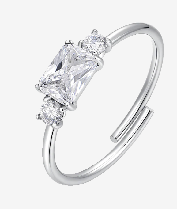 Anello donna in acciaio con zirconi bianchi Misura regolabile Questo anello in acciaio con zirconi bianchi dona un’eleganza senza tempo, con una vestibilità regolabile che lo rende perfetto per ogni occasione.