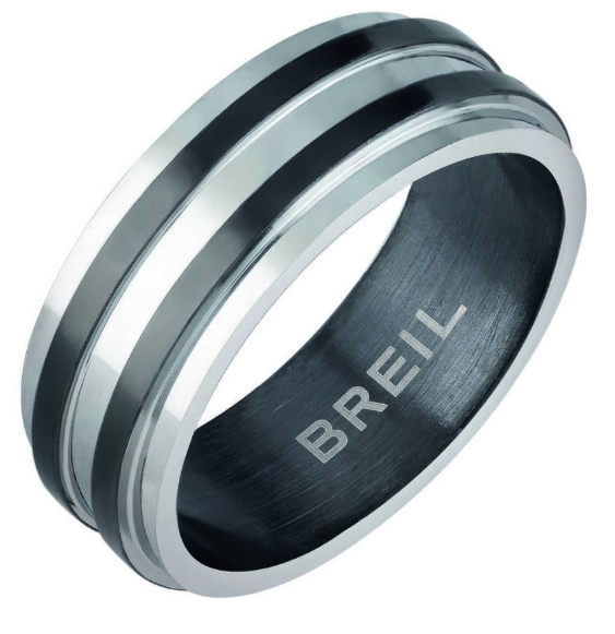 Anello da uomo di Breil della collezione joint. Fascia in acciaio lucido con sezioni in acciaio ip black lucido