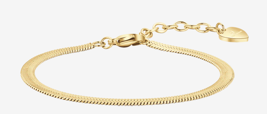 Bracciale in acciaio dorato. Lunghezza: 16,5 + 3 cm. Spessore maglia: 4 mm. Il bracciale in acciaio da donna modello snake è un accessorio dal design semplice e raffinato. Gioiello elegante e chic, è perfetto per essere indossato nella quotidianità. Il design semplice e la tonalità elegante lo rendono perfetto per ogni genere di look da quello più casual agli outfit ricercati. Idea regalo perfetta per le amanti degli accessori classici e senza tempo che non passano mai di moda.