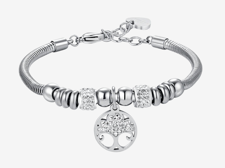 Bracciale con albero della vita con cristalli bianchi