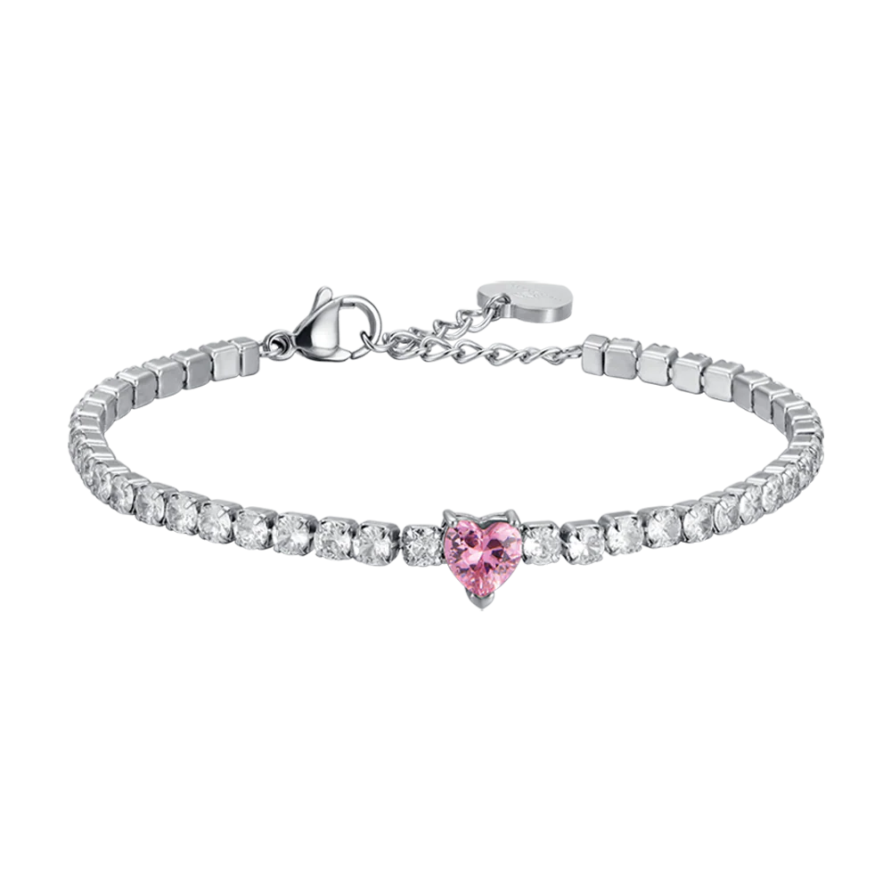BRACCIALE DONNA IN ACCIAIO CON CRISTALLI BIANCHI E CUORE CRISTALLO ROSA