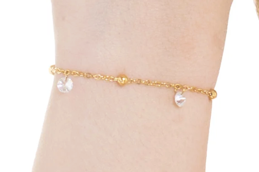 Bracciale donna in acciaio IP gold con zirconi bianchi Lunghezza: 16 + 3 cm Diametro zirconi: 4 mm Diametro sfere: 3 mm