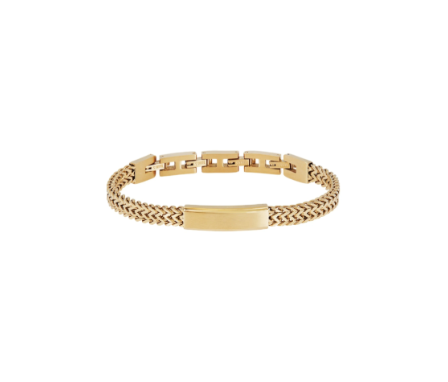 Il bracciale da uomo Edit Out in acciaio color oro ha una doppia anima, data dall’accostamento della elaborata e morbida maglia milanese all’elemento centrale, rigido e liscio, perfetto per essere anche personalizzato tramite un incisione. Edit Out è un gioiello maschile che esprime al massimo la personalità di chi lo indossa. La chiusura regolabile permette di modificare facilmente la misura del bracciale.