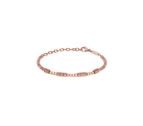 Il bracciale da uomo Mixology è elegante e minimal. La sua costruzione è decisamente originale ed è caratterizzata da innumerevoli micro dischetti e sfere in acciaio color rosa che creano un effetto snake molto piacevole. La chiusura regolabile permette di modificare facilmente la misura del bracciale.