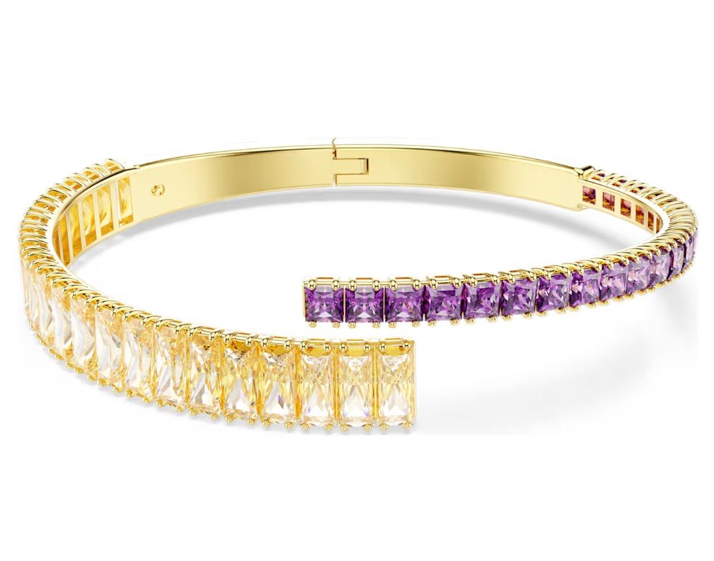 Colorato, energico ed espressivo, questo bangle Matrix è un modo gioioso per giocare con gli accessori. Dotato di un meccanismo a molla per una facile apertura, la fascia sovrapposta è placcata in tonalità oro e presenta Swarovski Zirconia color caramello e viola con taglio Square e Baguette. Una scelta vivace che si abbina a meraviglia con l’anello coordinato.Articolo nr.: 5731049