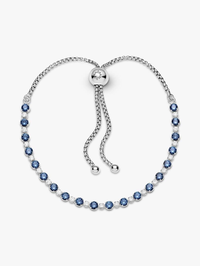 Indossate per secoli dai reali, queste luminose pietre preziose blu intenso ispirano un senso di bellezza e maestosità naturali e infondono eleganza a ogni outfit. Aggiungi una nota sofisticata al tuo look con le forme sensuali e i colori seducenti del nostro bracciale regolabile in Argento Sterling 925, decorato da pietre di zirconia cubica incolori e blu. Regola la chiusura affinché si adatti perfettamente al tuo polso e sfoggia questo bracciale tennis dalle linee eleganti e senza tempo, che amerai e indosserai per tanti anni.
