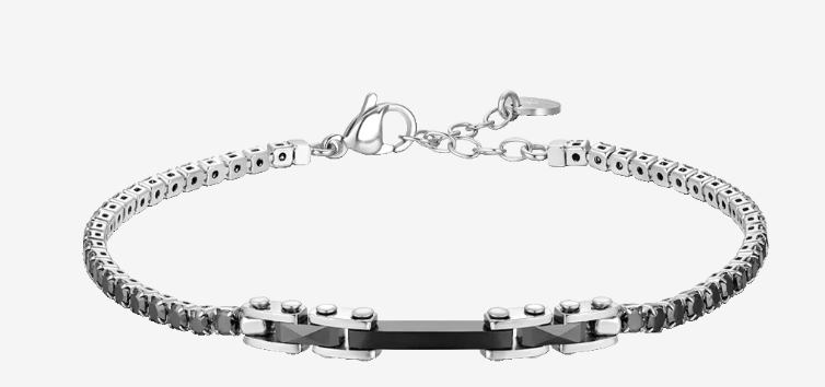 Bracciale tennis uomo in acciaio con ceramica nera e zirconi neri Lunghezza: 19 + 3 cm Misura elemento centrale: 13 x 8 mm