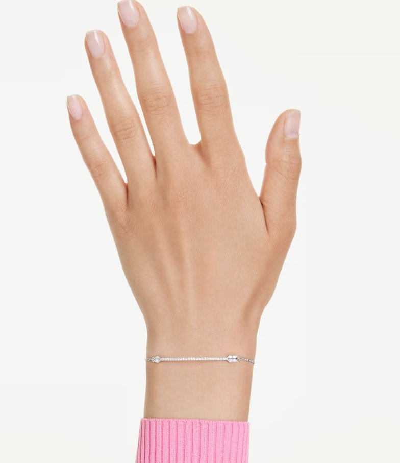 Per una rivisitazione creativa del classico tema dell’amore, il bracciale placcato rodio è realizzato a forma di freccia di Cupido. Il design combina l’elegante placcatura rodio con cristalli Cry trasparenti di varie dimensioni, mentre una chiusura scorrevole ti permette di regolare il bracciale alla tua misura. Indossalo da solo o abbinalo ad altri gioielli a forma di freccia della stessa famiglia Idyllia.