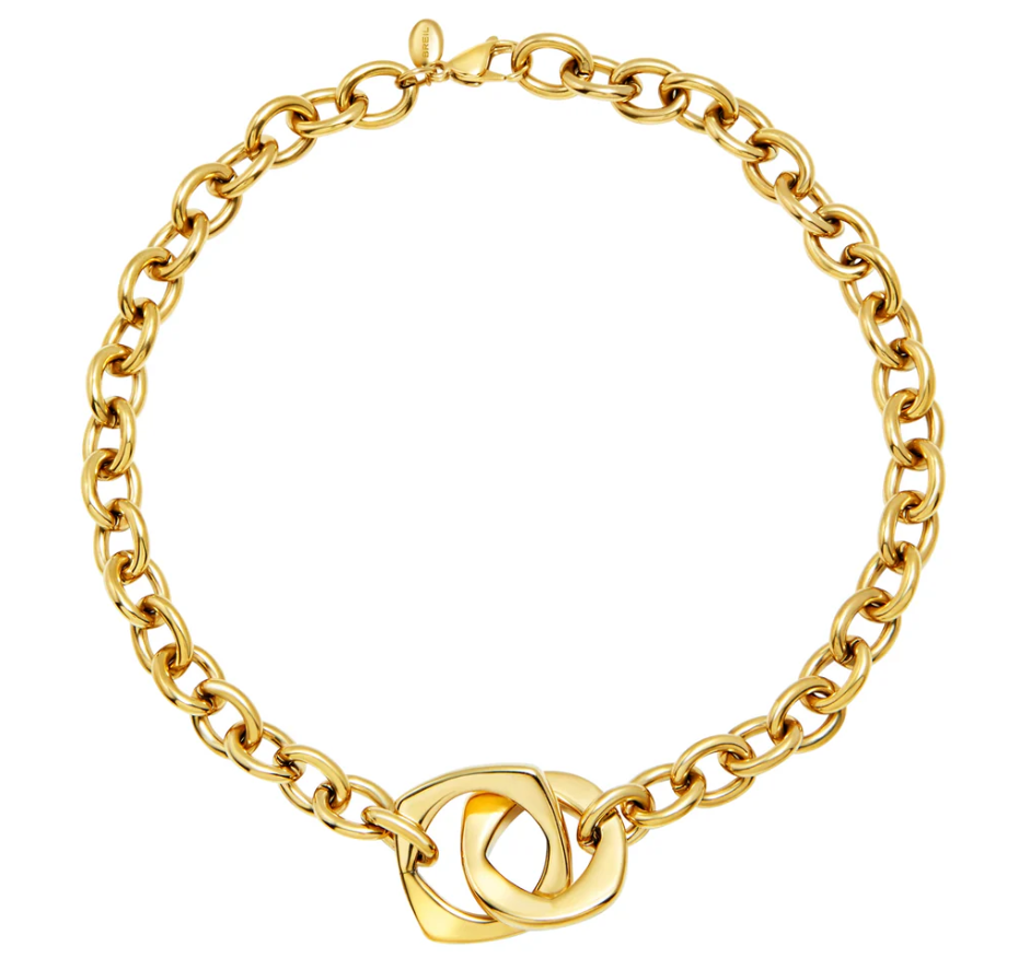 Le forme iconiche di Tetra, squadrata e forma tonda con goccia, assumono volumi bold e si intersecano tra di loro. La collana Tetra Goes Big in acciaio color gold, si distingue per i due elementi centrali intrecciati, uno squadrato con apertura tonda e l’altro tondo con goccia e apertura quadrata. Il tocco bold, enfatizzato anche dalla catena, dà carattere a ogni outfit, perfetta da indossare da sola è l’accessorio ideale per chi vuole osare.