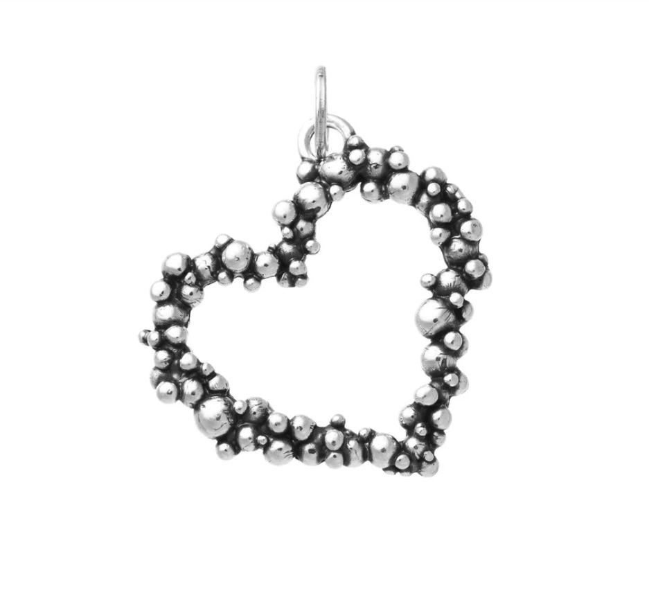 Charm pendente della collezione Giovanni Raspini Perlage da donna. Colore: argento. Il charm è realizzato in argento 925‰ a forma di cuore laterale. Altezza: 3,8 cm. I gioielli Giovanni Raspini sono interamente realizzati a mano in Italia.