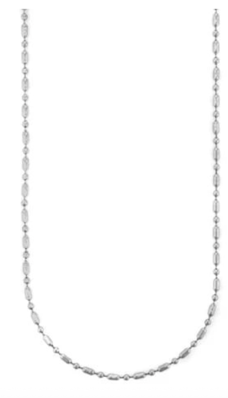 Il girocollo è realizzato in acciaio inossidabile color argento. La lunghezza è regolabile tra 50 cm e 55 cm grazie alla catena di allungo. La chiusura è con maglia a moschettone.