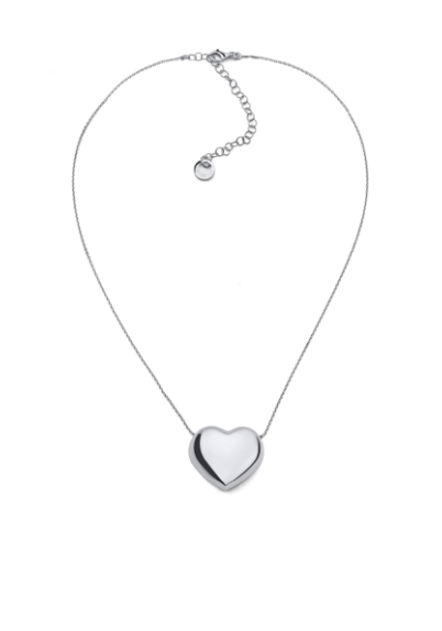 Collana in argento 925 con pendente a forma di cuore grande bombato. Chiusura a moschettone ed anelli di allungamento. Misura 45-50,00 cm. Un gioiello dalle linee morbide e d’effetto pensato per colpire ogni sguardo. Non temere di osare e gioca con la sensualità romantica del ciondolo a forma di cuore. Regala un po’ di dolcezza a te e a chi ami.