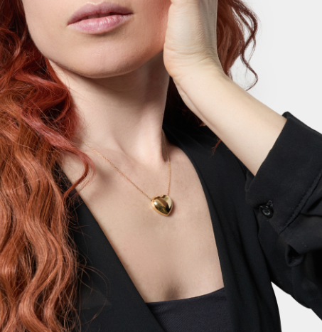 Collana in argento 925 dorato con pendente a forma di cuore medio bombato. Chiusura a moschettone ed anelli di allungamento. Misura 45-50,00 cm. Linee morbide ed avvolgenti per un gioiello che parla da solo. Gioca con la sensualità romantica del ciondolo a forma di cuore, sfoggia un tocco di raffinata dolcezza o sorprendi chi ami con un regalo speciale.👉 Affrettati! ne rimane solo 1
