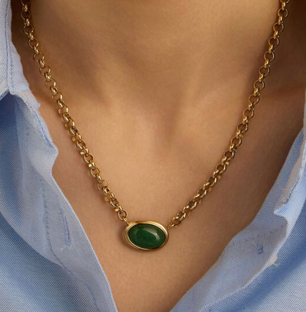 Collana Radiance Acciaio Dorato Maglia Rolo Avventurina Verde 42 cm
