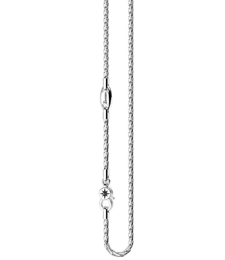 Collana girocollo della collezione Zancan Insignia 925 da uomo. Colore: argento. Il gioiello è in argento 925‰ composto da catena con maglia intrecciata e da chiusura a moschettone con dettaglio rosa dei venti. Peso 16,9 gr. Misura standard 50 cm.