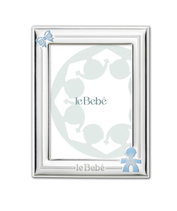 Cornice sagoma bimbo e fiocco in argento pvd e smalto.