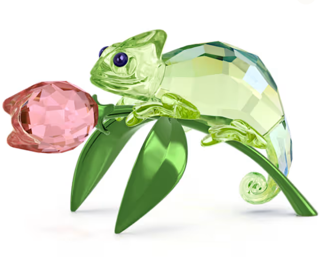 Addentrati nel mondo tropicale di Swarovski per scoprire il camaleonte a taglio pieno appollaiato su un tulipano rosa tenue. Per catturare lo spirito curioso e vivace del rettile, il design è magistralmente realizzato con 181 sfaccettature e l’attraente effetto Shimmer, mentre lo stelo e le foglie sono realizzati in metallo laccato verde lucido. Aggiungi l’esotico ornamento alla tua collezione per un’incantevole celebrazione della natura. Oggetto decorativo. Non è un giocattolo. Non adatto ai bambini di età inferiore a 15 anni.