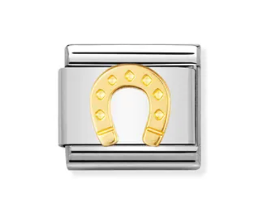 Tessera Originale per Bracciale Componibile Classic in Acciaio e Oro con simbolo del Ferro di Cavallo. Made in Italy. Metti al tuo polso un Link Portafortuna, da portare sempre con te in ogni occasione.