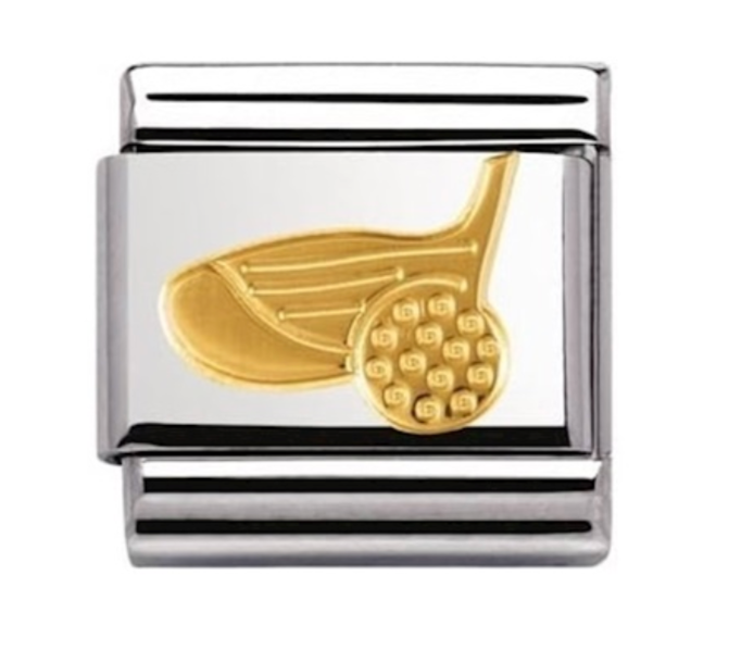 Tessera Originale per Bracciale Componibile Classic in Acciaio e Oro, con simbolo mazza da golf e pallina. Made in Italy. Per gli appassionati dello sport del golf, questo Link Classic della Nomination è l’accessorio ideale per dimostrare il tuo amore per il gioco.