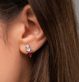 Mono orecchino donna in acciaio, cuori con zirconi bianchi e rossi Lunghezza: 1,4 cm Misura cuore: 5 x 5, 4 x 4, 3 x 3 mm