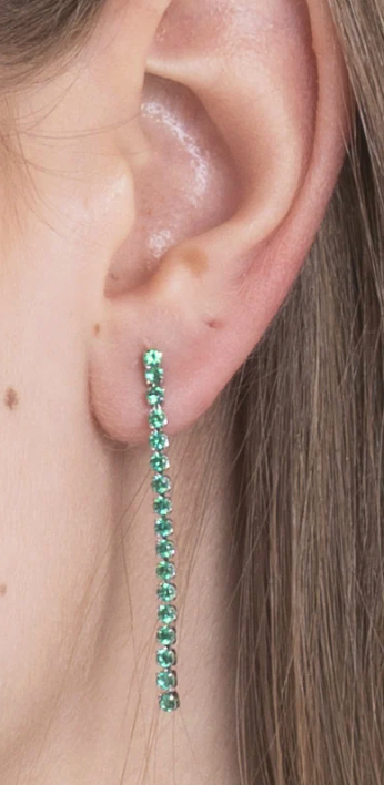 Mono orecchino tennis donna in acciaio con zirconi verdi Lunghezza: 4 cm Diametro zirconi: 2,2 mm