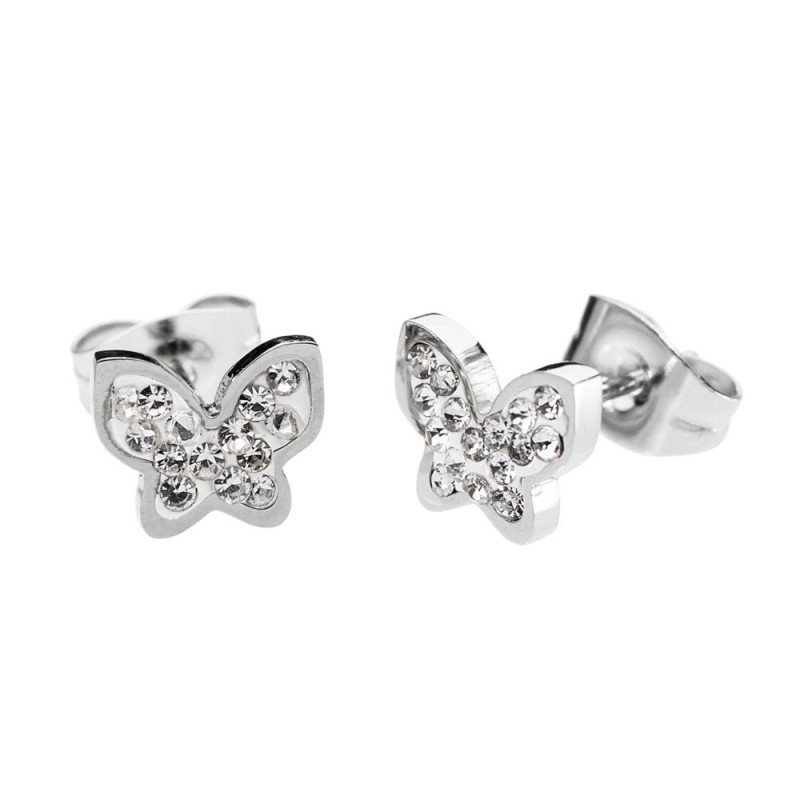 Orecchini in acciaio farfalla con cristalli. Collezione: Time To Materiali: acciaio, cristalli