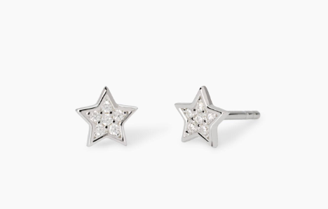 Orecchini a lobo in argento con forma stella in pavé di zirconi bianchi.