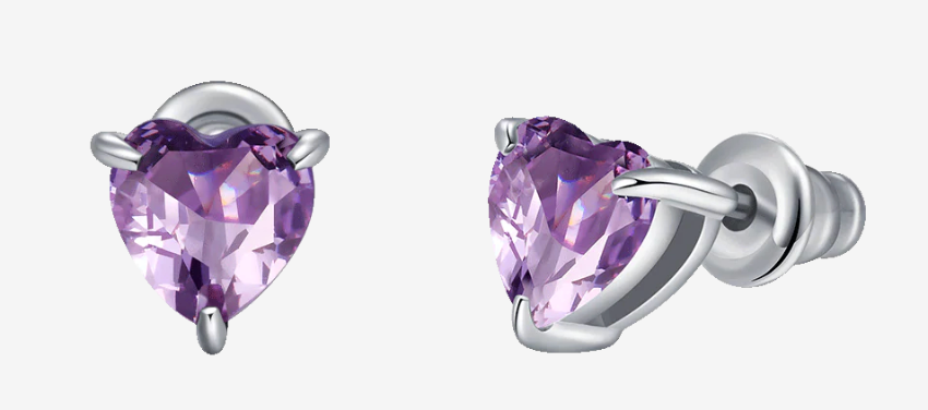 Orecchini in acciaio con cuore in cristallo viola. Lunghezza: 7 x 4 mm Diametro cristallo: 6 mm Per chi cerca un gioiello che parli di classe e raffinatezza, questi orecchini in acciaio con cuore di cristallo viola sono la scelta perfetta. Aggiungi un tocco di colore al tuo viso, con il fascino di un cuore che si fa notare senza mai essere eccessivo. Un accessorio che ti farà sentire speciale in ogni momento