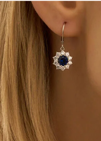 Orecchini Pendenti Fiore Silver Elegance Argento Rodiato 925/1000 Cubic Zirconia Blu Cubic Zirconia Bianco
