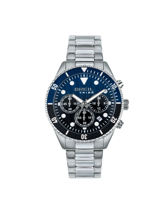 Il cronografo da uomo Overhand prende ispirazione dall’ambiente marino. Cassa e bracciale in acciaio sono accostati a un quadrante nero e blu con dettagli silver, illuminato da indici bianchi a contrasto e abbinato alla lunetta nera e blu. Il bracciale in acciaio con finish bilux arricchisce questo orologio di stile.