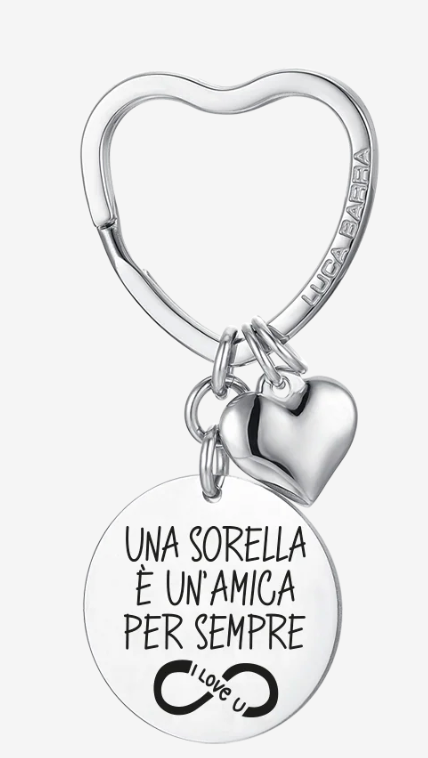 Portachiavi Donna in acciaio Una Sorella E’ Un’Amica Per Tutta La Vita. Lunghezza: 7 cm. Diametro piastra: 28 mm. Questo Portachiavi in Acciaio è un omaggio speciale all’amicizia eterna tra sorelle. Inciso con la dolce frase “”Una Sorella È Un’Amica Per Tutta La Vita,”” questo portachiavi celebra il legame indissolubile che condividete con la vostra sorella.Le parole incise riflettono la profondità dell’affetto e della connessione tra voi due, un legame che durerà per tutta la vita.
